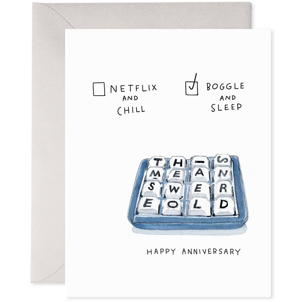 Boggle and Sleep Anniversary Card