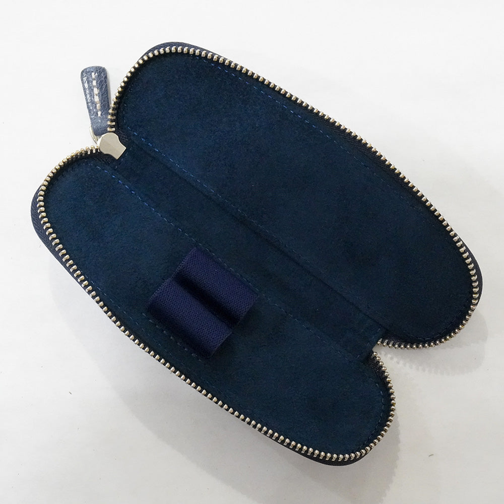 Galen Leather 2 Pen Zipper Duo Pen Case - Crazy Horse Navy Blue