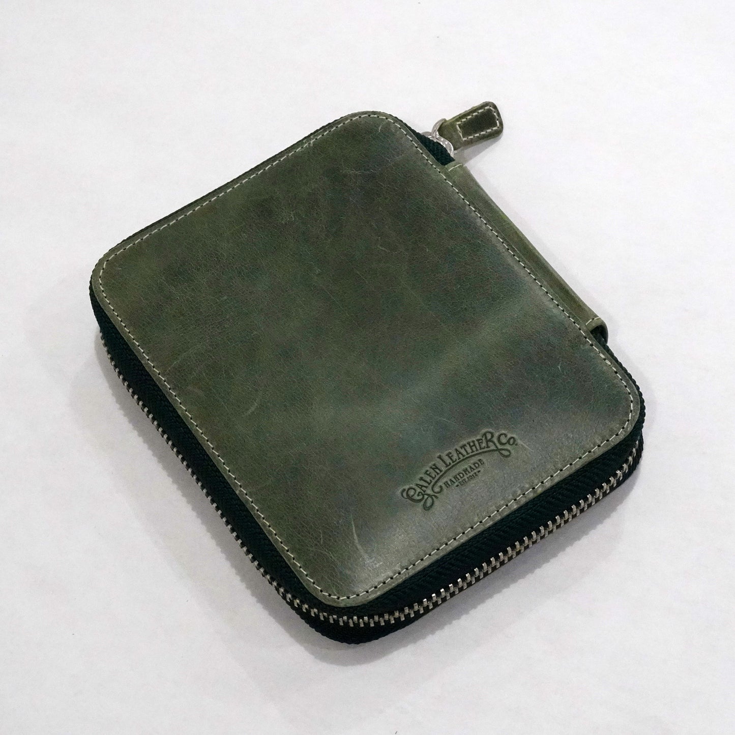 Galen Leather Zippered 10 Pen Case - Crazy Horse Forest Green