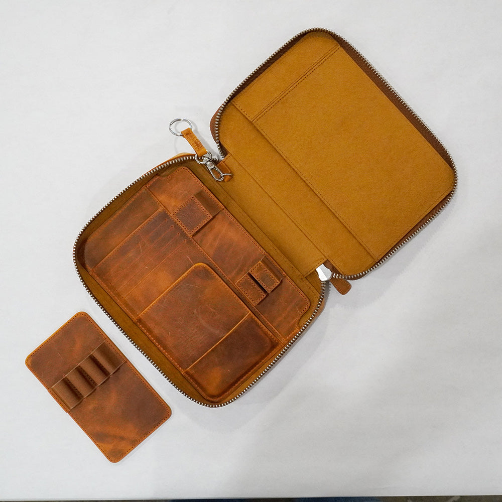 Galen Leather Expansi-Folio Wide Zippered A5 Notebook Folio - Crazy Horse Brown