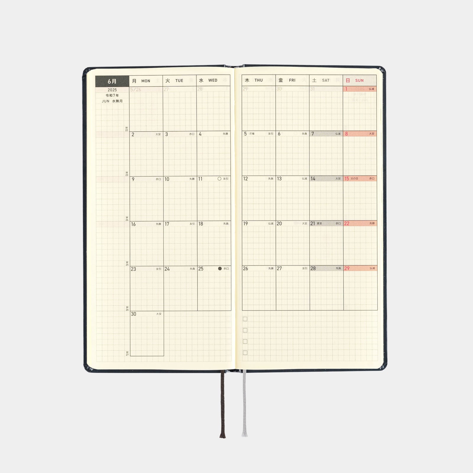 Wallet-sized Techo Weeks April Start in Japanese Features: