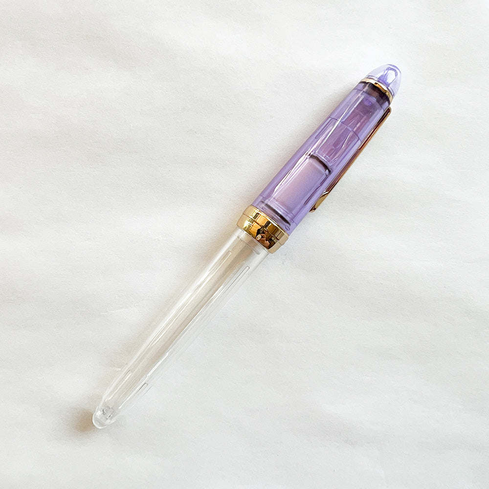 Clear body with a plastic snap cap and a glass tip