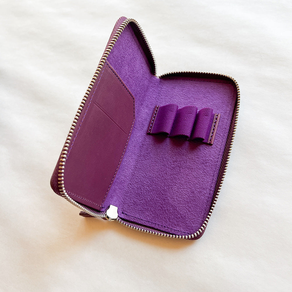 Galen Leather Zippered 3 Pen Case - Purple